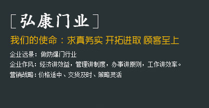 • 河北弘康門業(yè)有限公司     河北弘康門業(yè)有限公司是一家生產(chǎn)防爆門窗、泄爆門窗、密閉門窗、防火門窗、監(jiān)獄門、隔音門、變壓器門,隧道抗風(fēng)壓防火門,隧道防護(hù)門,3小時防火門窗,防火玻璃門,雙向開啟防火門等特種門窗的生產(chǎn)廠家。河北弘康門業(yè)有限公司一直致力于防爆技術(shù)、新產(chǎn)品的研究開發(fā)工作。